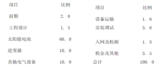 光伏發電何時達到平價上網(即光伏發電的成本達到常規能源發電電價的水平)是一個備受關注的問題。*發改委能源研究所提出,所謂平價上網有2個概念,即輸電側上網和配電側上網。配電側上網也即自發自用,可以與電網銷售電價比較(我國銷售電價為0.5~1元/(kW·h) ),這表明光伏發電自用更容易實現“平價上網”。但如果是輸電側中高壓并網,因我國常規電力上網電價一般僅為0.3元/ (kW·h),要在這個水平上達到平價上網還有相當的難度。光伏發電系統成本的60%以上來自太陽能電池。2006年,并網光伏發電系統成本約為5萬元/kW,系統各部分成本比例見下表。