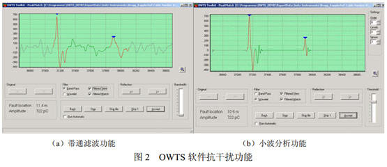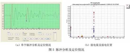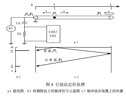 其中L為電纜長度,V為脈沖波在電纜中的速度,τ為兩個(gè)脈沖的時(shí)延。OWTS振蕩波電纜局部放電檢測和定位裝置采用該原理對電力電纜局部放電進(jìn)行定位,如圖5所示。