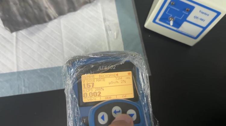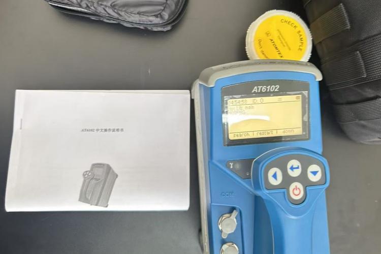 隨后使用AT6102對實(shí)驗(yàn)室中的輻射源樣本進(jìn)行了測試。儀器迅速顯示了監(jiān)測到的數(shù)據(jù),展示了AT6102在環(huán)境輻射監(jiān)測中的高效性和準(zhǔn)確性。
