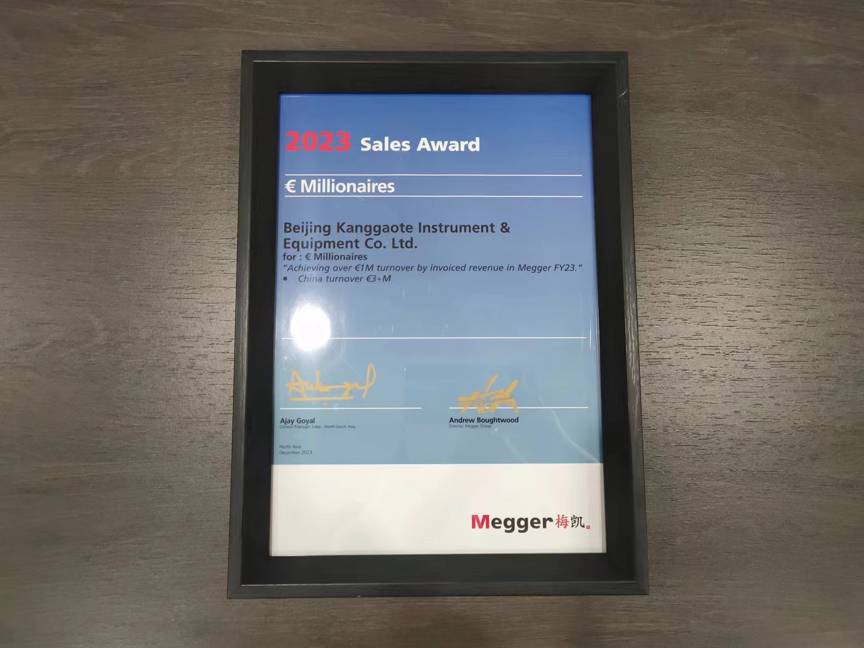 康高特榮獲2023 Megger亞太區(qū)銷售最大貢獻(xiàn)獎(jiǎng)!